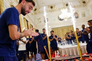 体育资讯9月9日讯 9月8日是葡萄牙中场布鲁诺-费尔南德斯的生日,由于适逢国际比赛日,曼联队长和国家队队友度过了一个难忘的生日。
