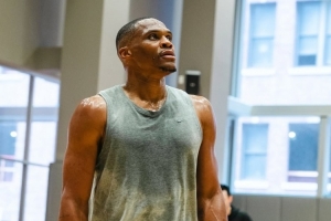 体育资讯9月11日讯 自由球员威少更新社媒,转发了今天的一组训练照。