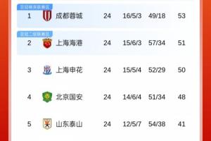 体育资讯09月14日讯 中超第24轮,除改期至10月4日的梅州客家vs青岛海牛外,其余比赛均结束,积分榜如下↓