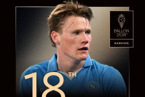 体育资讯9月23日讯 2025年金球奖排名陆续公布,28岁那不勒斯中场麦克托米奈排名第18位,生涯首次入围。