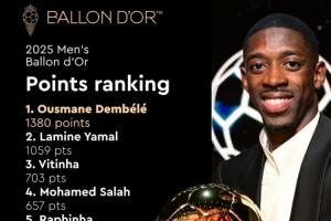 登贝莱今年28岁,在24/25赛季,他共代表巴黎圣日耳曼出场53次,打进35粒进球,送出16次助攻。随巴黎圣日耳曼获得4项冠军:法国杯、法超杯、法甲和欧冠;国家队方面,登贝莱在评选周期内代表法国国家队出场7次,打进2球。个人荣誉层面,登贝莱上赛季获得了法甲金靴、法甲最佳球员、欧冠最佳球员。
