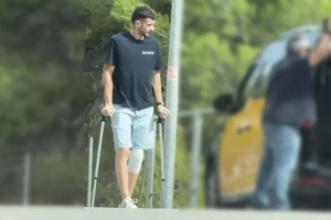 霍安-加西亚被拍到拄着拐杖现身,而能否赶得上10月对皇马的国家德比,目前似乎非常困难。
